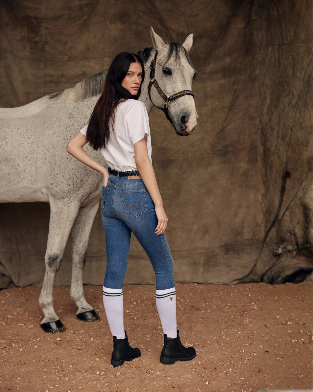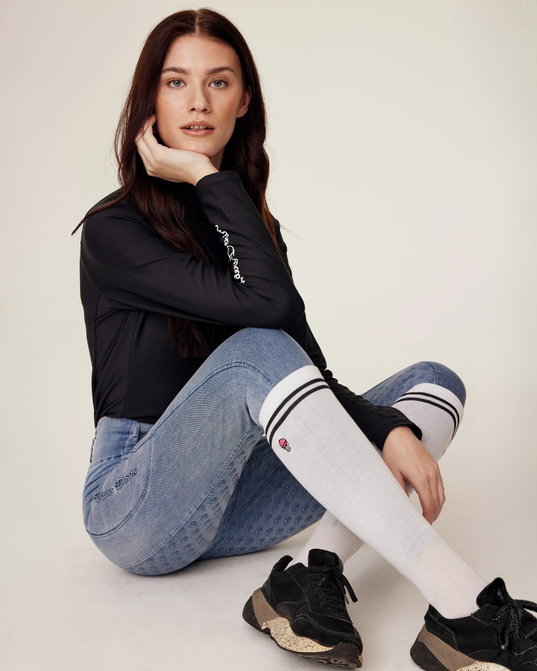 Våra sportiga ridstrumpor är gjorda av 78 % återvunnen bomull, andas och känns super-bekväma på fötterna.
